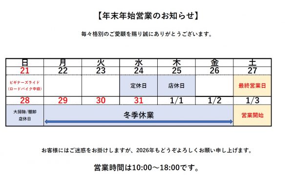 2026年も「買って終わりではない、自転車を楽しみ続けられるお店」を大切に、皆様の「走る楽しさ」を全力でサポートしてまいります。