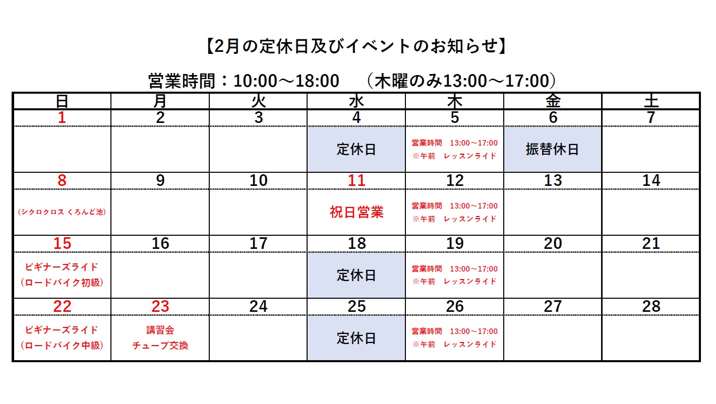 今月は丹のライド予定の都合上、開催はございません