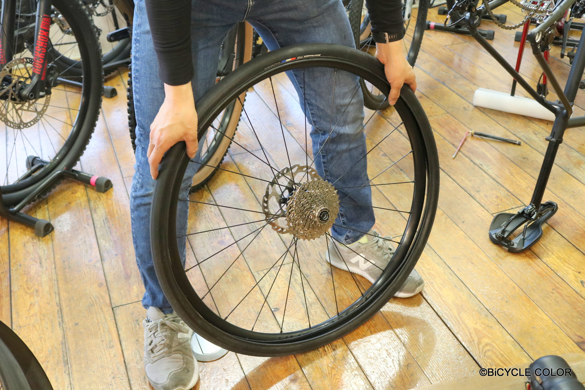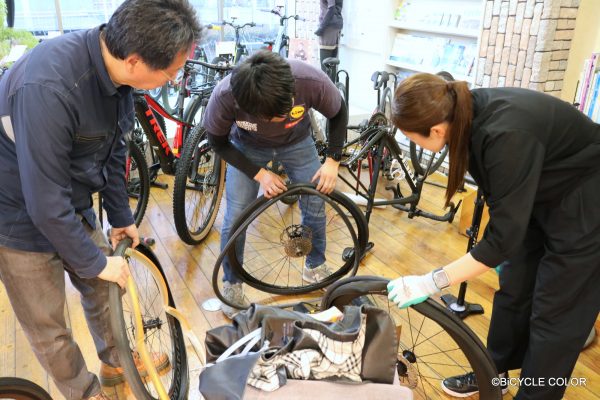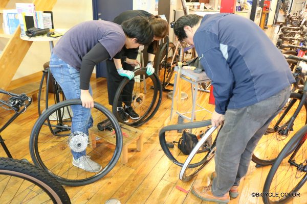当店では実践形式にて、道中でパンクしたと想定し、いちから丁寧にレクチャーします。