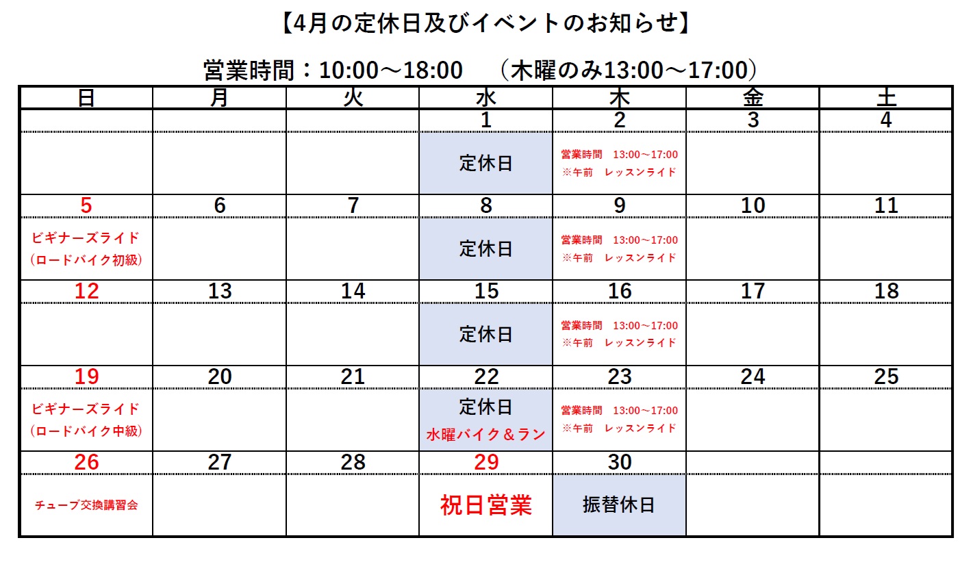 持ち物 : 愛車のホイール(自転車ごとでも構いません)、タイヤレバー、 携帯ポンプ(お持ちでない場合は店頭にて販売しております)。