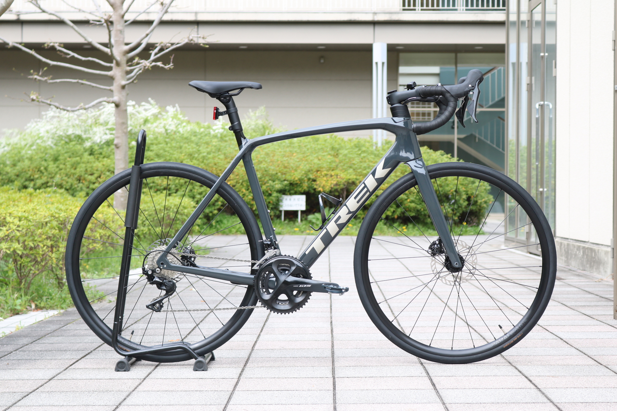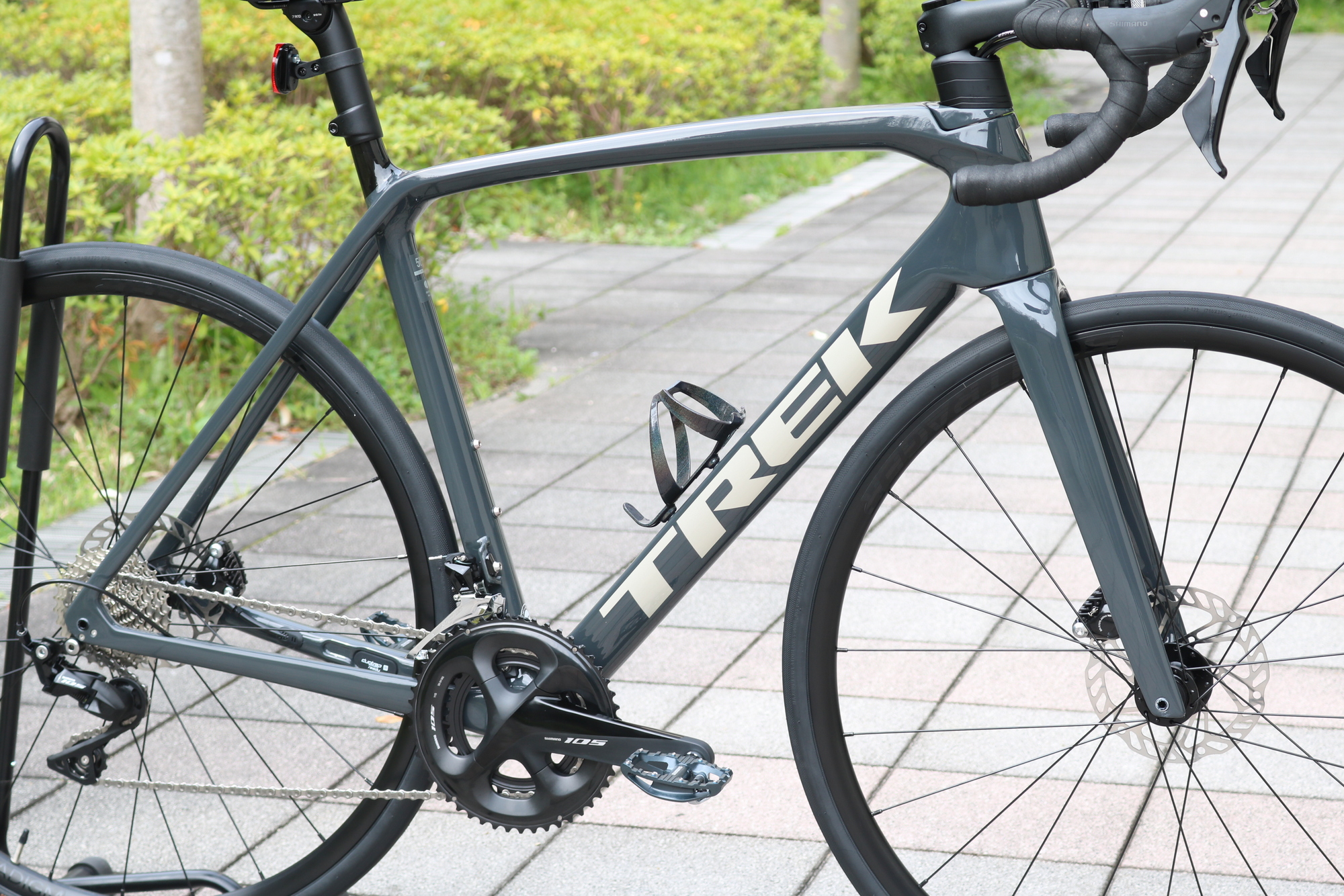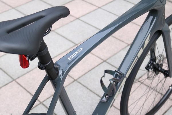 通勤距離こそ短く、最初はFX3やDOMANE(ドマーネ)ALシリーズが候補でしたが、「今後サイクリングも増やしてビワイチ(琵琶湖一周)にもチャレンジしたい!」とこ事で、カーボンフレームのEMONDA(エモンダ) SL5にご決定頂きました。
